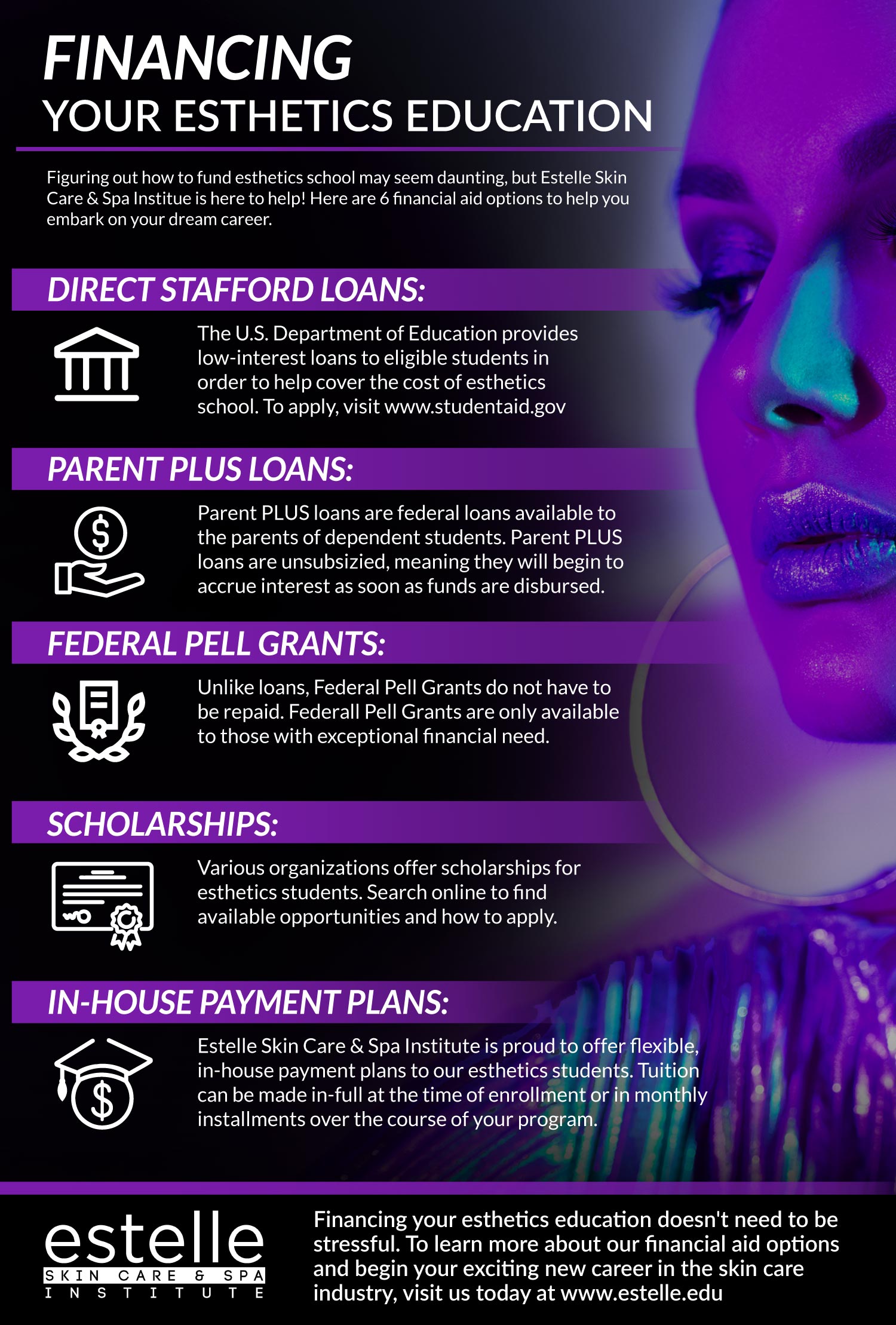 At Estelle Skin Care and Spa Institute, we believe in empowering aspiring beauty professionals to pursue their dreams. We understand that financing your education is an important consideration, and we are here to support you every step of the way. Contact us today to learn more about our financial aid options and to ask any questions you may have.